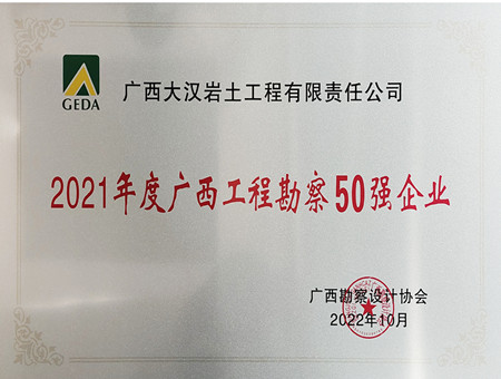 欽州市恒源岩土工程有限公司榮獲“2021年(nián)度廣西工程勘察50強企業”