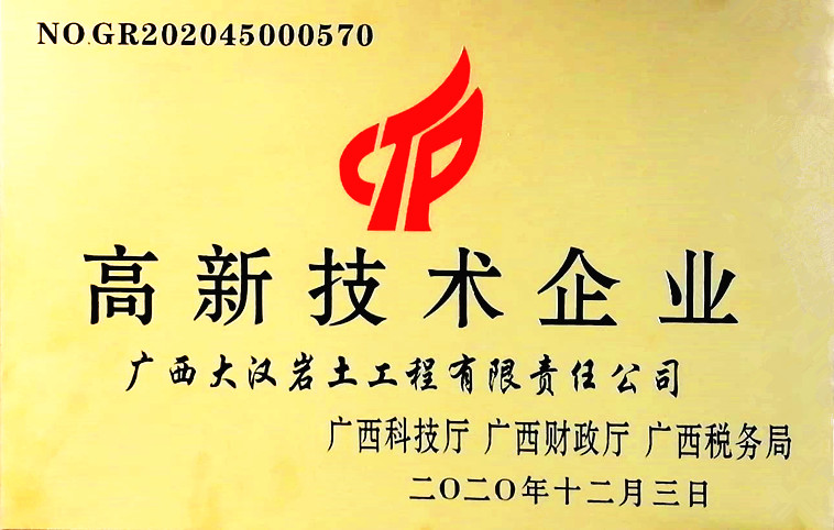 高(gāo)新技術企業是發展高(gāo)新技術産業的(de)重要基礎,是調整産業結構、提高(gāo)國(guó)家競争力的(de)生力軍,在我國(guó)經濟發展中占有十分重要的(de)戰略地(dì)位。欽州市恒源岩土工程有限公司不斷提高(gāo)自(zì)身的(de)研發和(hé)創新能力,于2020年(nián)12月3日被評為(wèi)國(guó)家高(gāo)新技術企業。